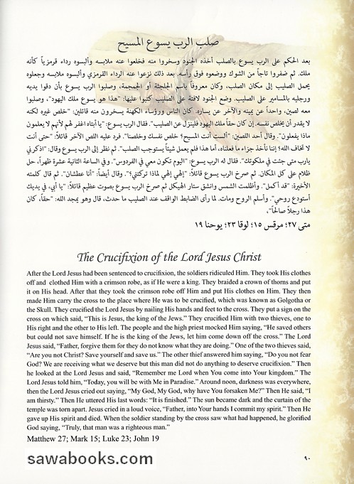 Beautiful illustrations and stories from the life of Jesus Christ and major events in the early Church from the Gospels and the book of Acts. Bilingual in Arabic and English.