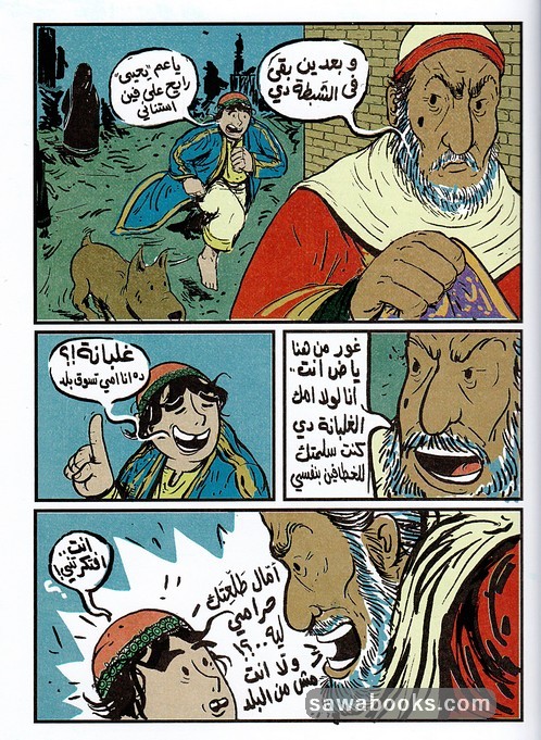 This graphic novel tells the story of the famine that decimated Egypt during the rule of al-Mustansir Billah. The story begins with a kind man who transports the dead and who goes from house to house to confirm whether the occupants are alive or not. Fate introduces him to a boy who robs the homes of the dead.