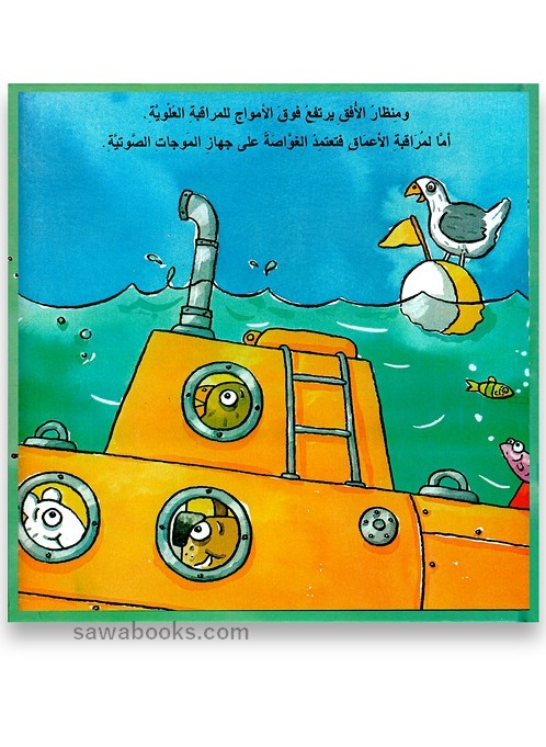 Three animal friends go on an underwater adventure in a submarine. In Arabic and English.